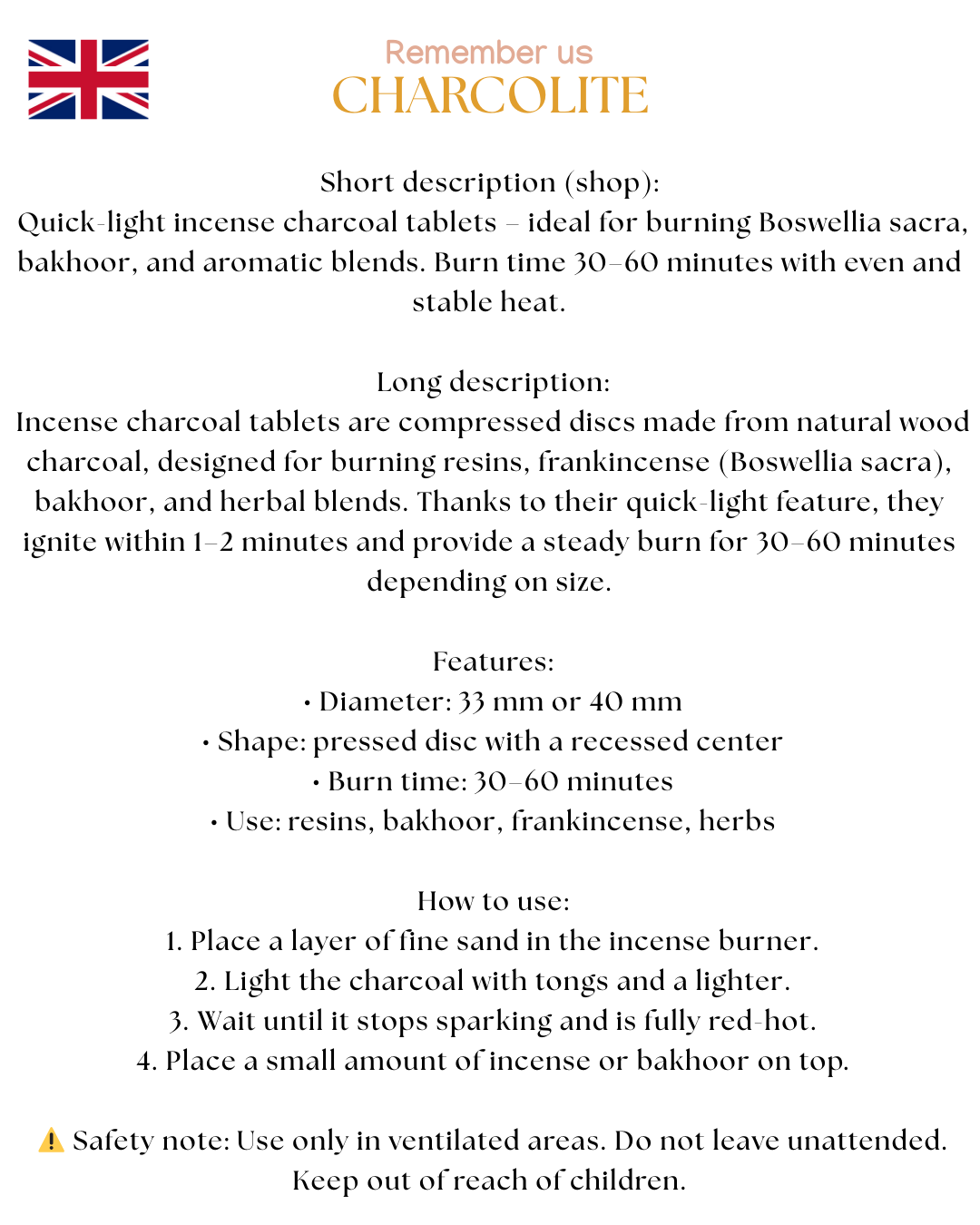 Charcolite-charcoal disks