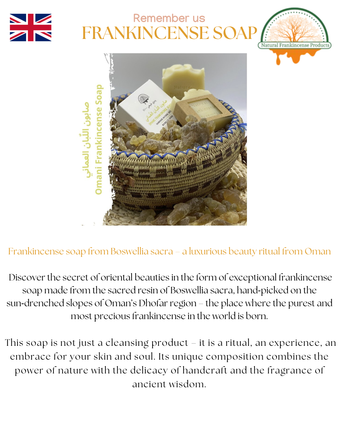 Natural Frankincense Products specialises in the production and distribution of natural frankincense products, in particular the species Boswellia sacra, which is found in the Dhofar region of Oman. The company was founded in 2019 and is headquartered in Salalah, Oman.